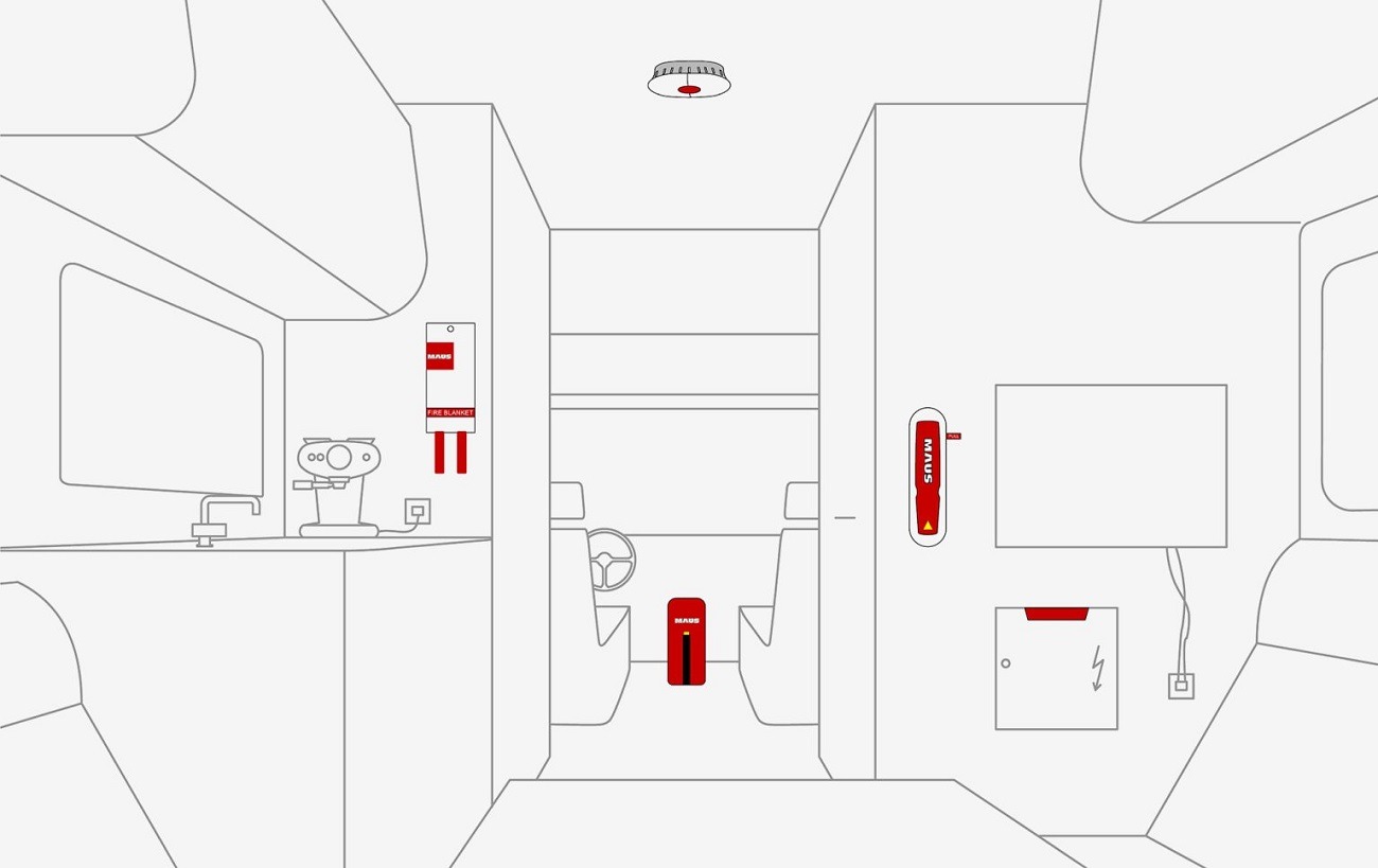 A fire in a caravan or mobile home moves very quickly. With MAUS’ easily accessible and effective fire protection, you can act immediately in the event of any type of fire in your vehicle. Place fire extinguishers, fire blankets and smoke alarms so you can always act without risking your own safety. With MAUS, you have an innovative and environmentally friendly fire protection completely free of service and expensive cleaning costs. With our smart and award-winning self-triggering devices, MAUS Stixx PRO, you can install a preventive automatic fire protection that extinguishes the fire in smaller spaces (battery, gas, electricity, etc.) before it spreads and causes major damage. Don’t let a fire stop your RV vacation.