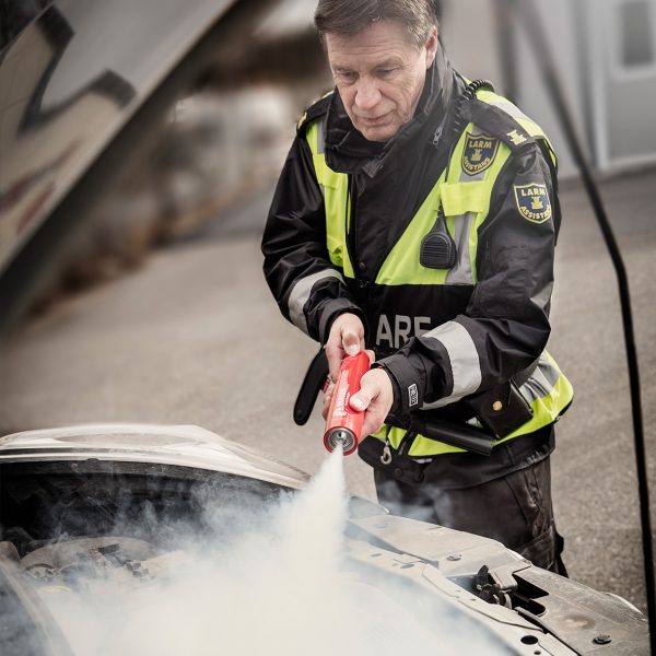 "There was a minor engine fire in a passenger car on the motorway. The driver ran in a semi-panic and picked up snow in the ditch. He looked a little skeptical when I brought the little red mojo boy, but he was both happy and impressed by what it could do. It worked very well. We will be sending out some internal information at the company about the event, so there will be good publicity spreading for the little fire extinguisher.”